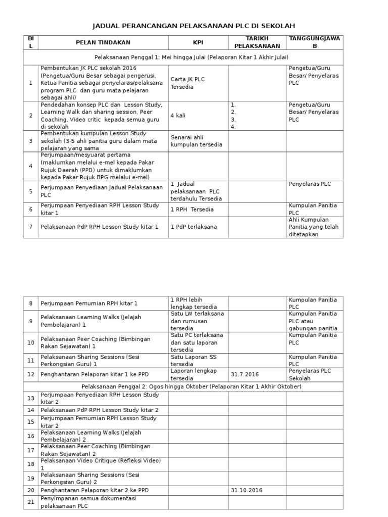 Untuk lebih jelasnya simak penjelasan berikut. Pandangan ini dipersetujui oleh. Jadual pelaksanaan plc di sekolah.